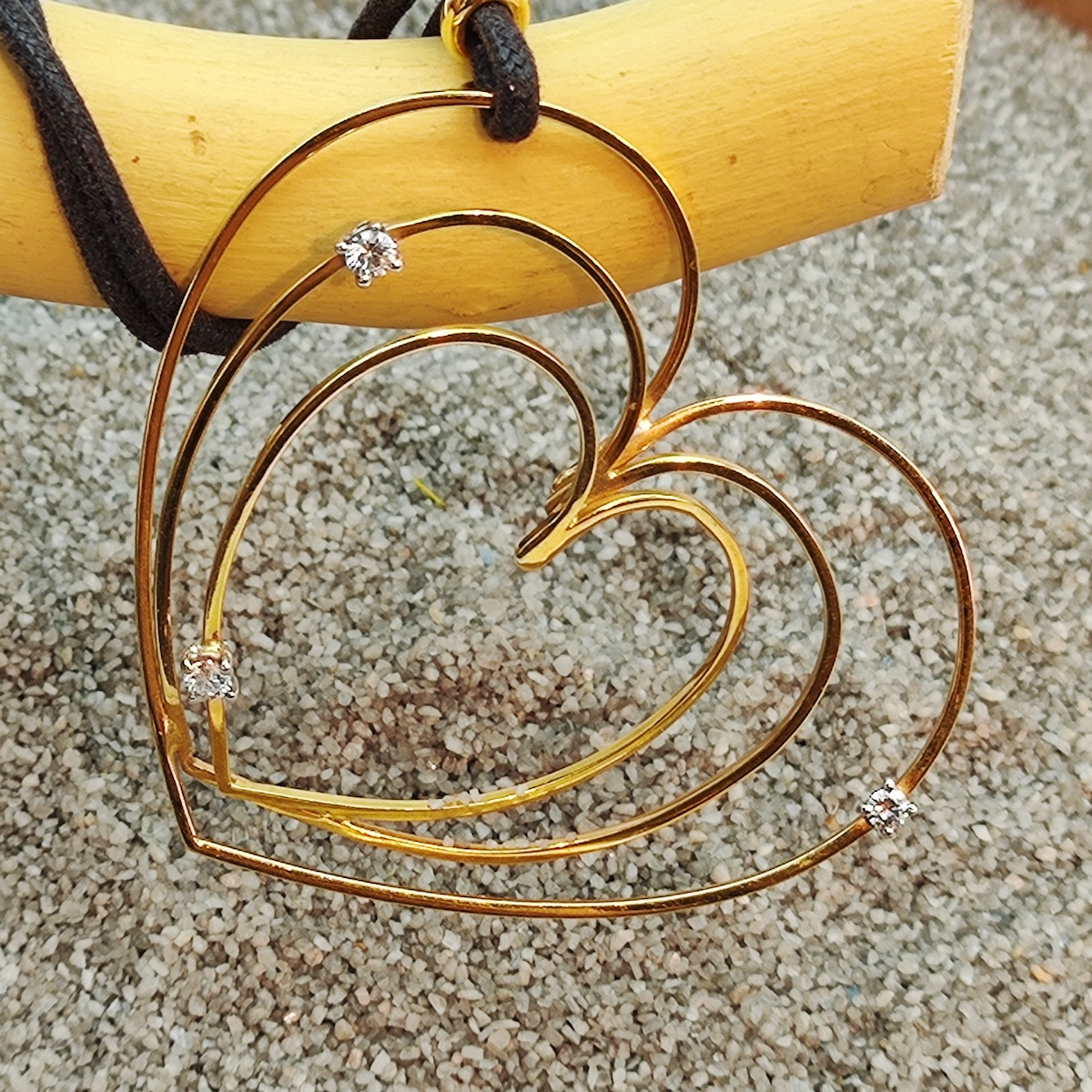 Ciondolo Alfieri Saint John con tre cuori e tre brillanti larghezza 5 cm