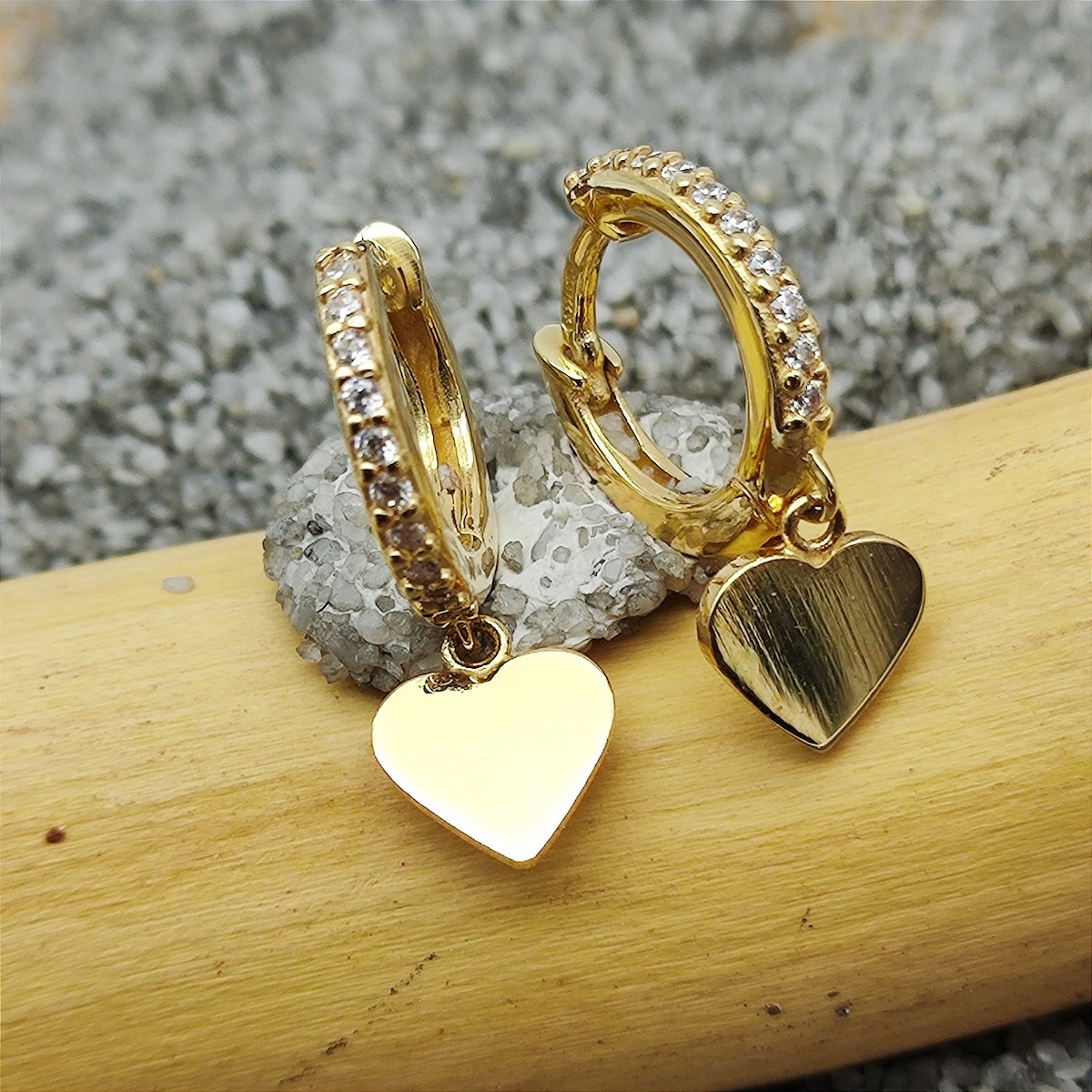 Orecchini a cerchio con cuori pendenti in oro 18kt e zirgoni