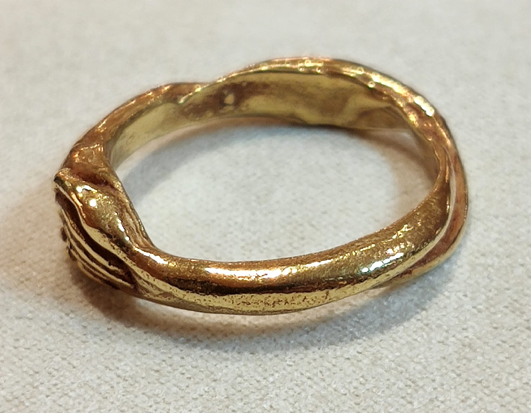 Anello in oro 18 Kt, frutto della lavorazione artigianale e del genio dello scultore Germano: pezzo unico ed irripetibile interamente fatto a mano. Peso 6 gr